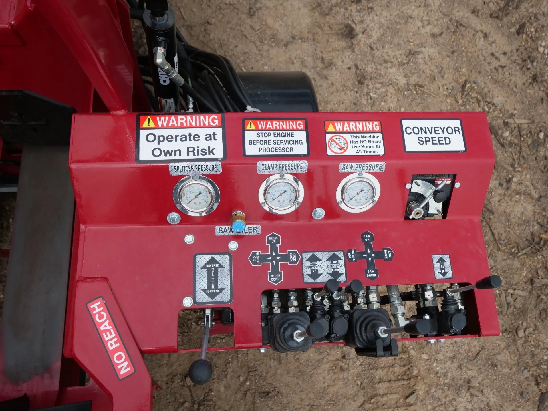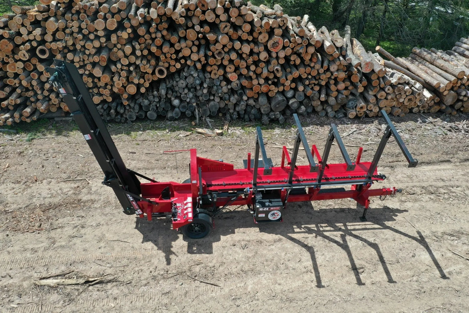 - The BruteForce USA 16-24 processor comes standard with a 3-strand live deck that converts into a log lift and is easily hydraulically raised and lowered. The hydraulic saw bar, log clamp, live deck, log in-feed, and conveyor are all located on a dash for easy use. The integrated 12ft hydraulic operated chain conveyor allows the operator to easily load firewood into a trailer or truck bed.