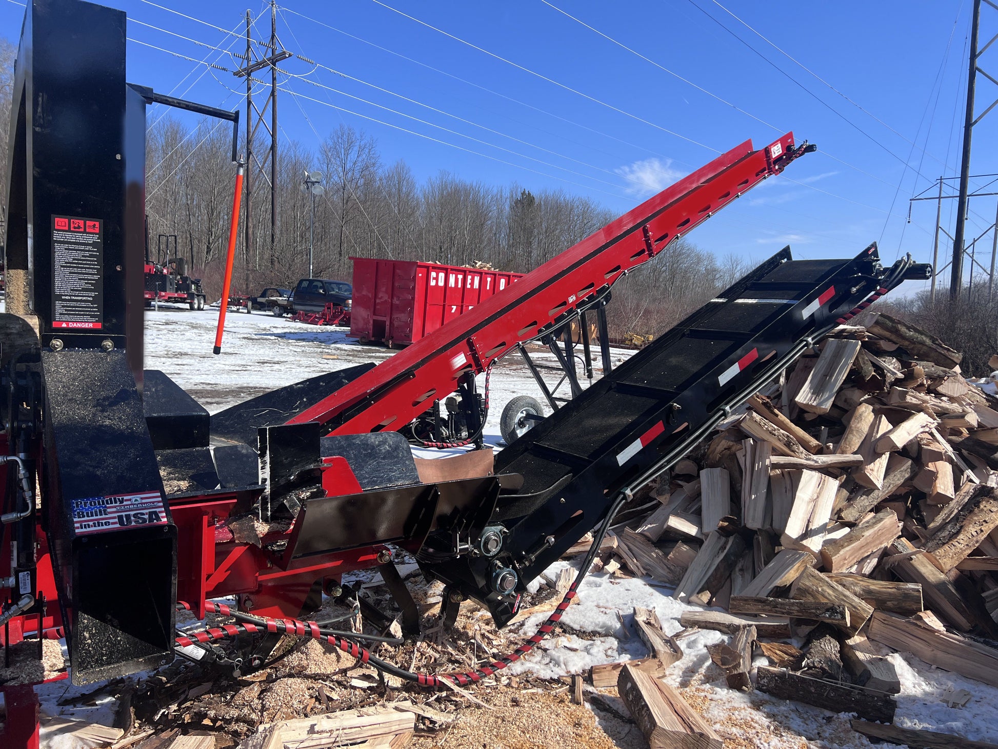 - The 16-24 XL can be equipped with a 12' long integrated conveyor, which enables operators to easily load cut and split firewood into a truckbed or trailer for transportation. The integrated conveyor uses a hydraulic lift to raise and lower the conveyor, so setting up the firewood processor with a conveyor is simple and not labor-intensive. Unlike other log processors on the market, the conveyor of the 16-24 XL folds over the center of the firewood processing machine to ensure secure travel.
