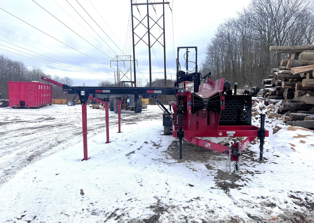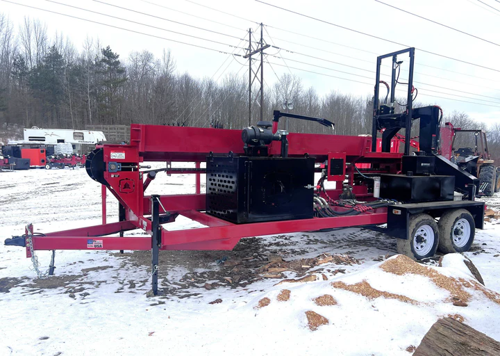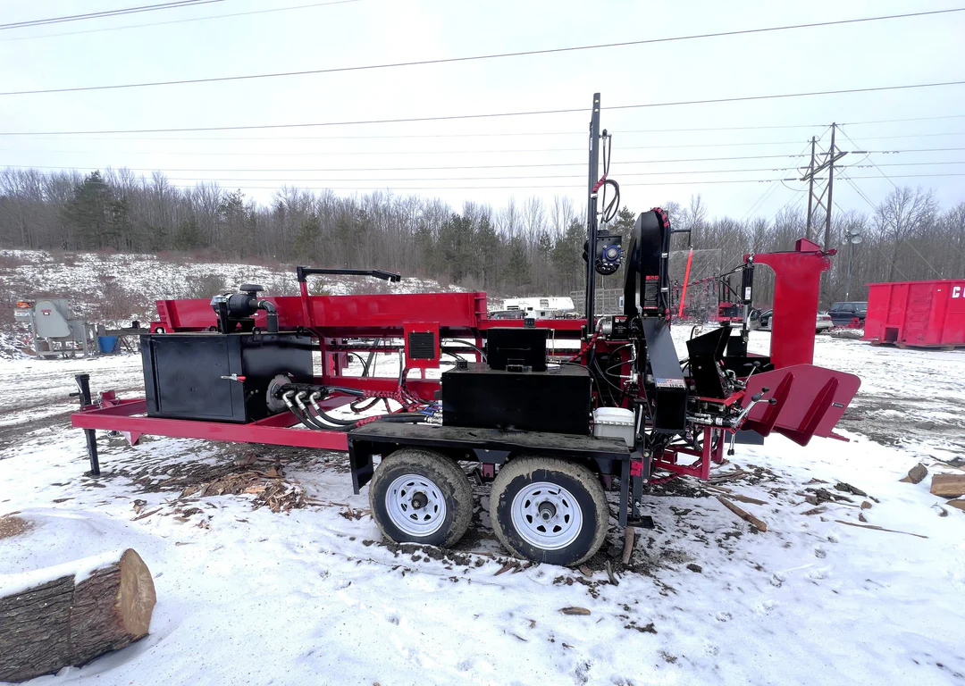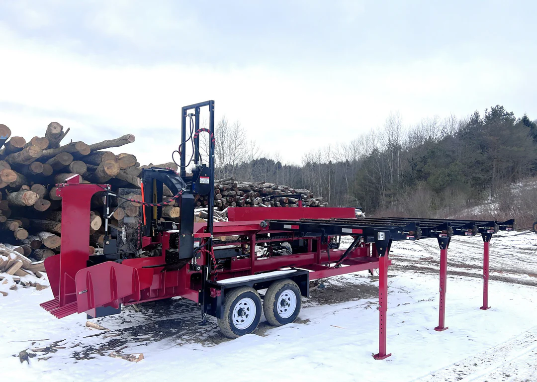 - The integrated conveyor swings 3ft left and right, allowing the operator to easily load firewood into a trailer or truck box (even with high sides). The hydraulic saw bar, log clamp, live log deck, and log in-feed trough are all all joystick controlled for ease of use.