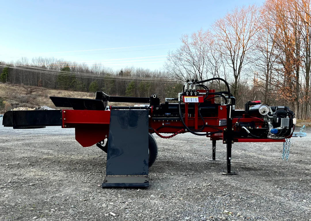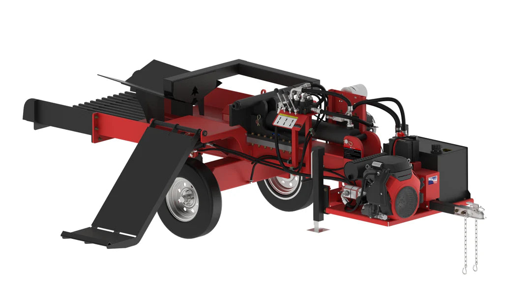 With a 12' long plate steel frame weighing 2550 lbs, the BF-6 commercial wood splitter is overbuilt to take on any firewood splitting task year after year. Dual jacks provide rigid stability for the heavy-duty box wedge splitter.