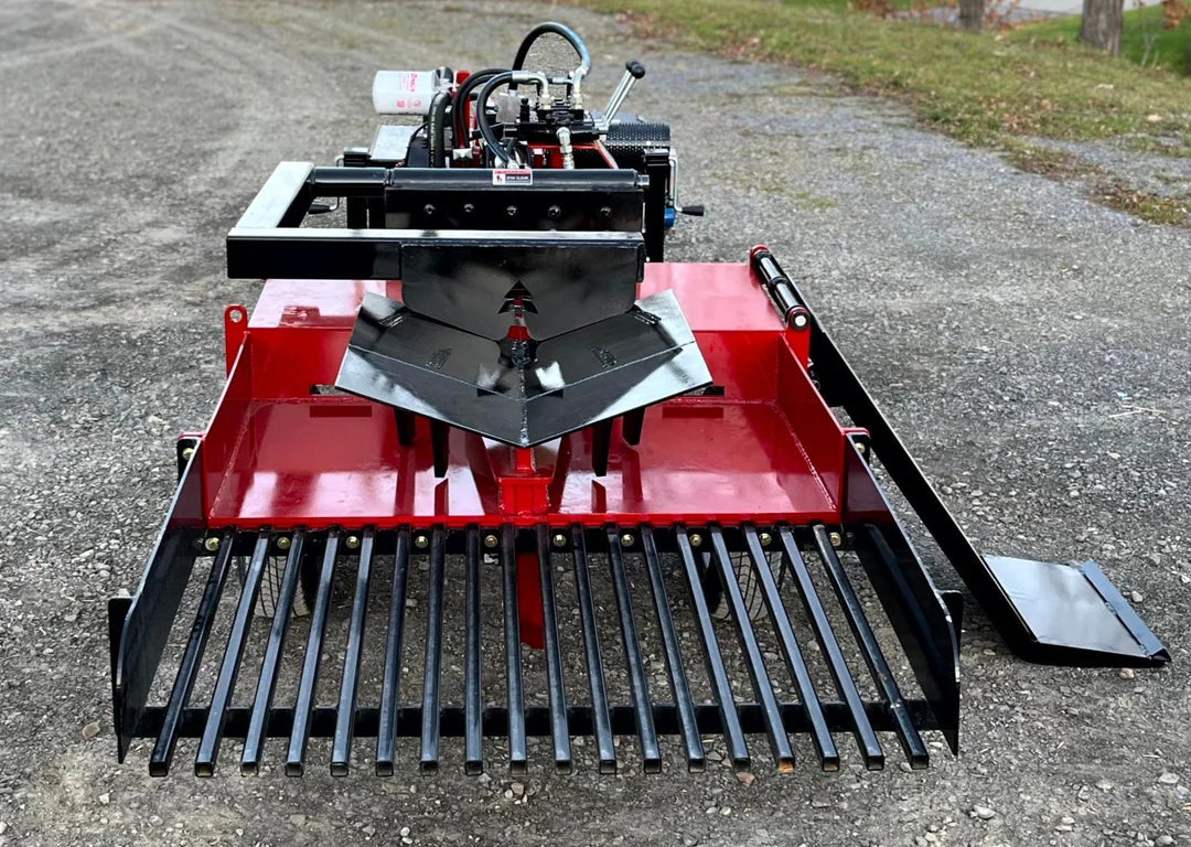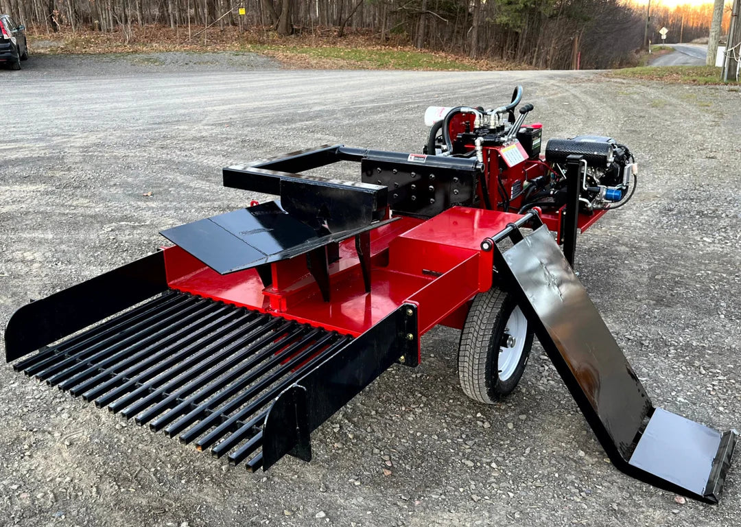 A 40" wide by 36" long sorting table, constructed from heavy gauge pipe and American-made plate steel separates unwanted debris from split logs and acts as a funnel, perfect for operations that use a conveyor as the next step in firewood production.