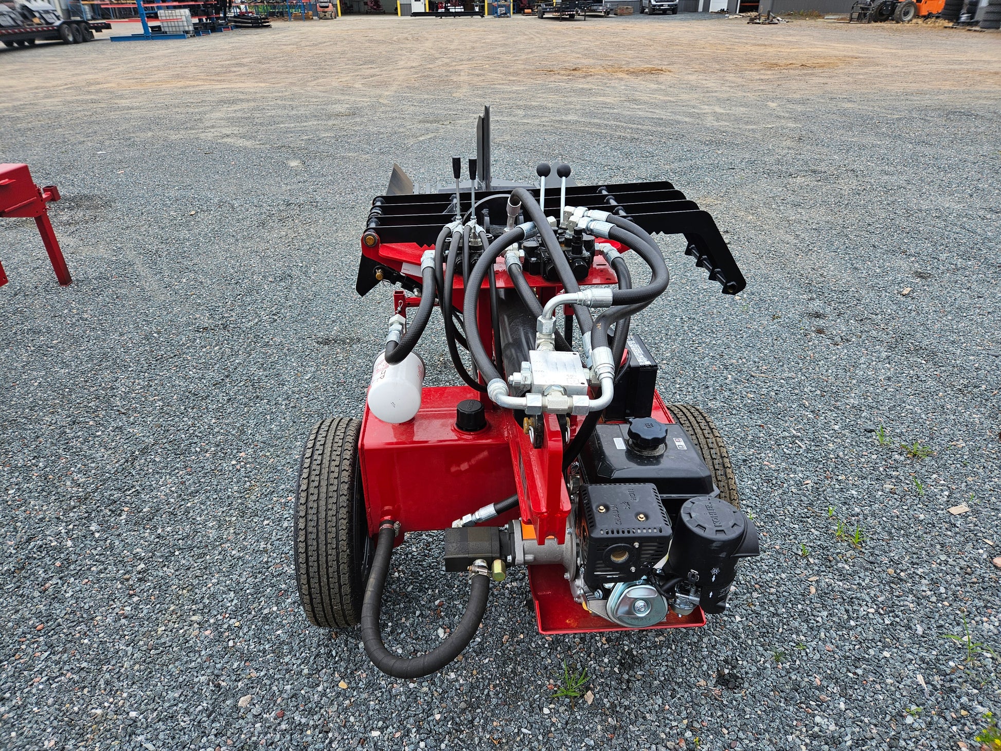 - This machine is designed with the operator's safety and comfort in mind, and features center-mounted controls, an easily accessible splitting chamber, and hydraulically controlled wedge and log lifts to increase production and efficiency.